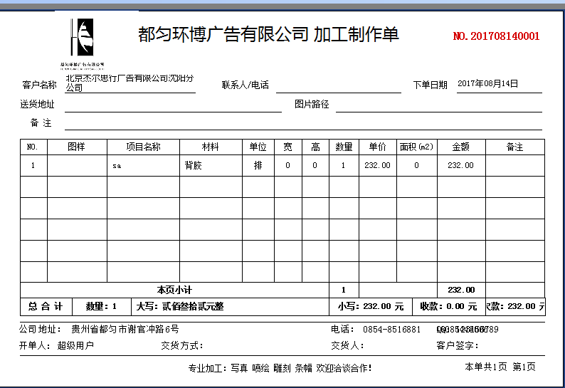 飛揚動力廣告公司管理軟件可以在打印的時候,加上自己公司獨有的logo、二維碼等信息。
